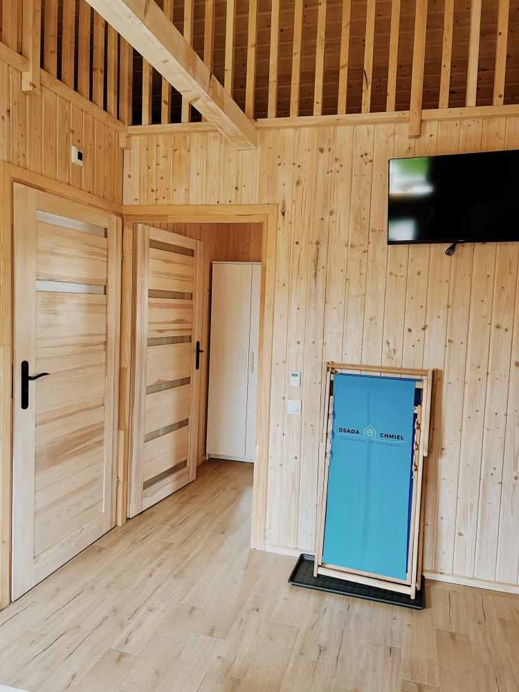 Do każdego domku przysługuje jedno darmowe stanowisko parkingowe. W przypadku dużego obłożenia opłata za dodatkowy samochód wynosi 100 zł/dobę.